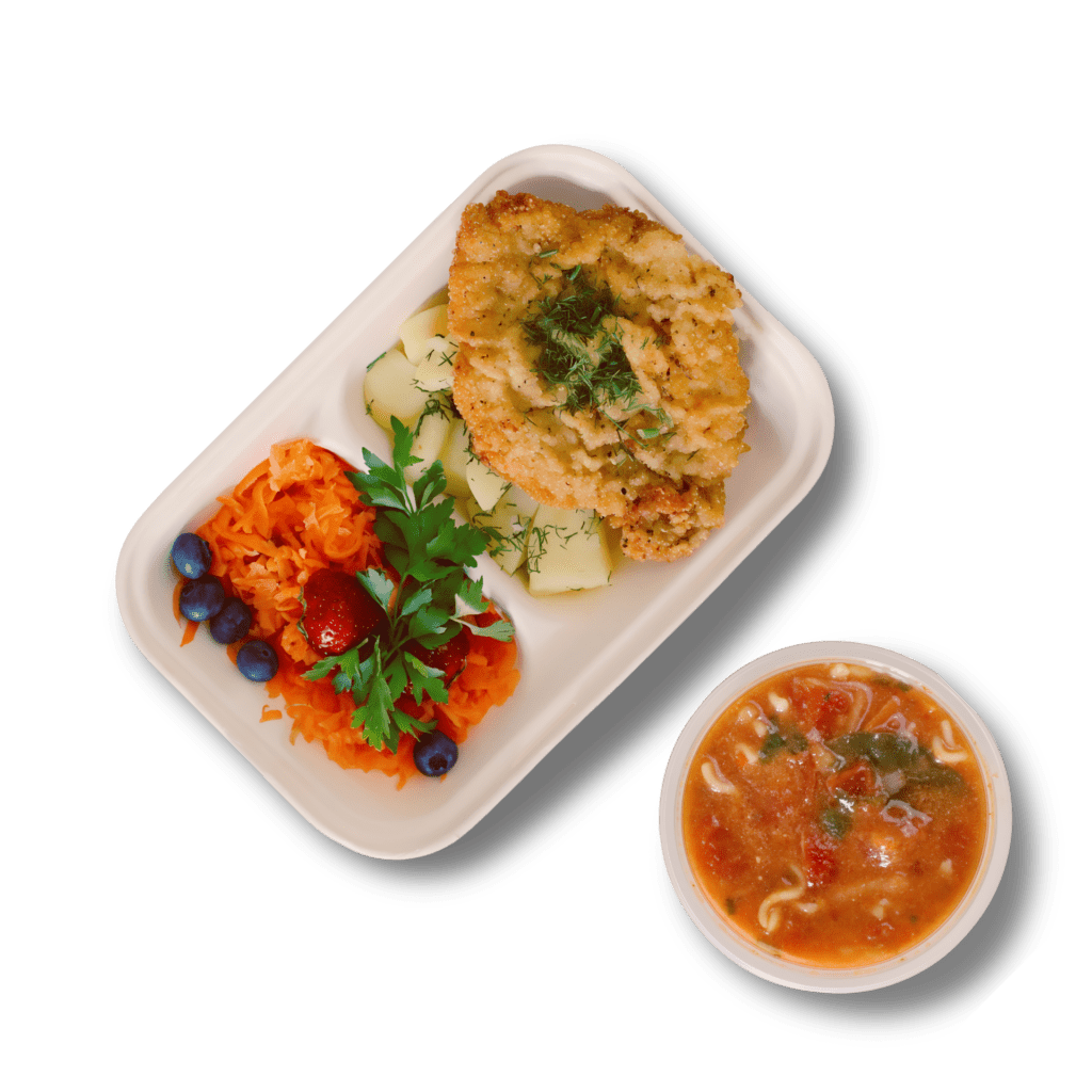 W naszym menu znajdziesz treściwe potrawy gotowane, pieczone i smażone, bogate w mięso, warzywa i produkty mączne. Zamawiając u nas, zyskujesz codzienny komfort, oszczędność czasu i pewność, że jesz smacznie i zdrowo – bez wychodzenia z domu, dostarczymy obiad prosto pod Twoje drzwi!