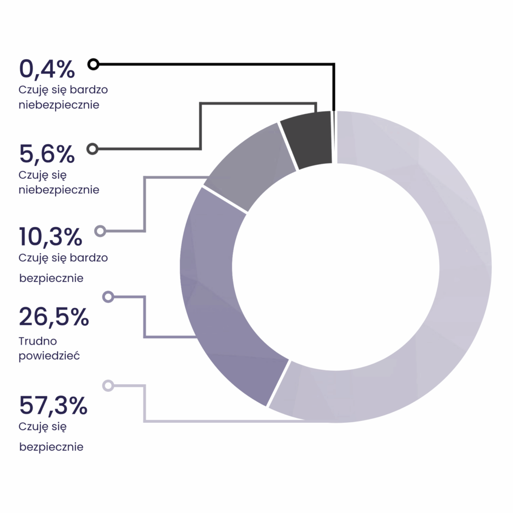 Większość seniorów deklaruje poczucie bezpieczeństwa w sieci – łącznie ponad 67% osób odpowiedziało, że czuje się „raczej bezpiecznie” lub „bardzo bezpiecznie”. Około 26% badanych wybrało odpowiedź „trudno powiedzieć”, co może świadczyć o niepewności lub braku pełnego zrozumienia zagrożeń internetowych. Niewielki odsetek – około 6% respondentów – przyznał, że czuje się w internecie niebezpiecznie lub bardzo niebezpiecznie. Wyniki te sugerują, że seniorzy generalnie postrzegają internet jako przestrzeń względnie bezpieczną i najprawdopodobniej nie są świadomi zagrożeń.