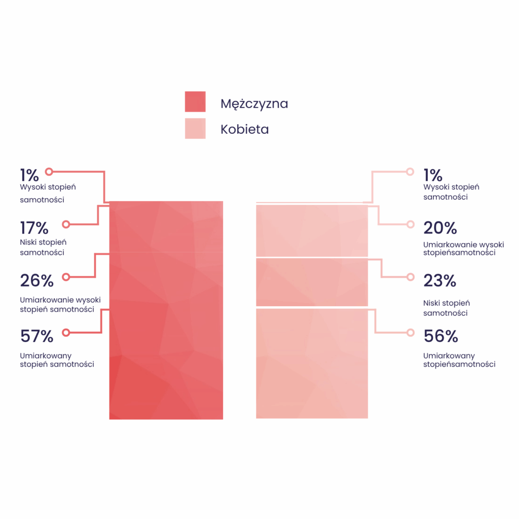 Wyniki pokazują, że większość seniorów odczuwa ją w umiarkowanym stopniu. Około 25% respondentów ma umiarkowanie wysoki stopień samotności, natomiast jedynie 20% ocenia swój poziom samotności jako bardzo niski. Samotność częściej dotyka osoby starsze wiekiem oraz mieszkające samotnie, szczególnie na terenach wiejskich. Wyniki te wskazują, że choć część seniorów zachowuje aktywność społeczną, to izolacja i ograniczone kontakty międzyludzkie pozostają jednym z głównych problemów starzejącego się społeczeństwa.